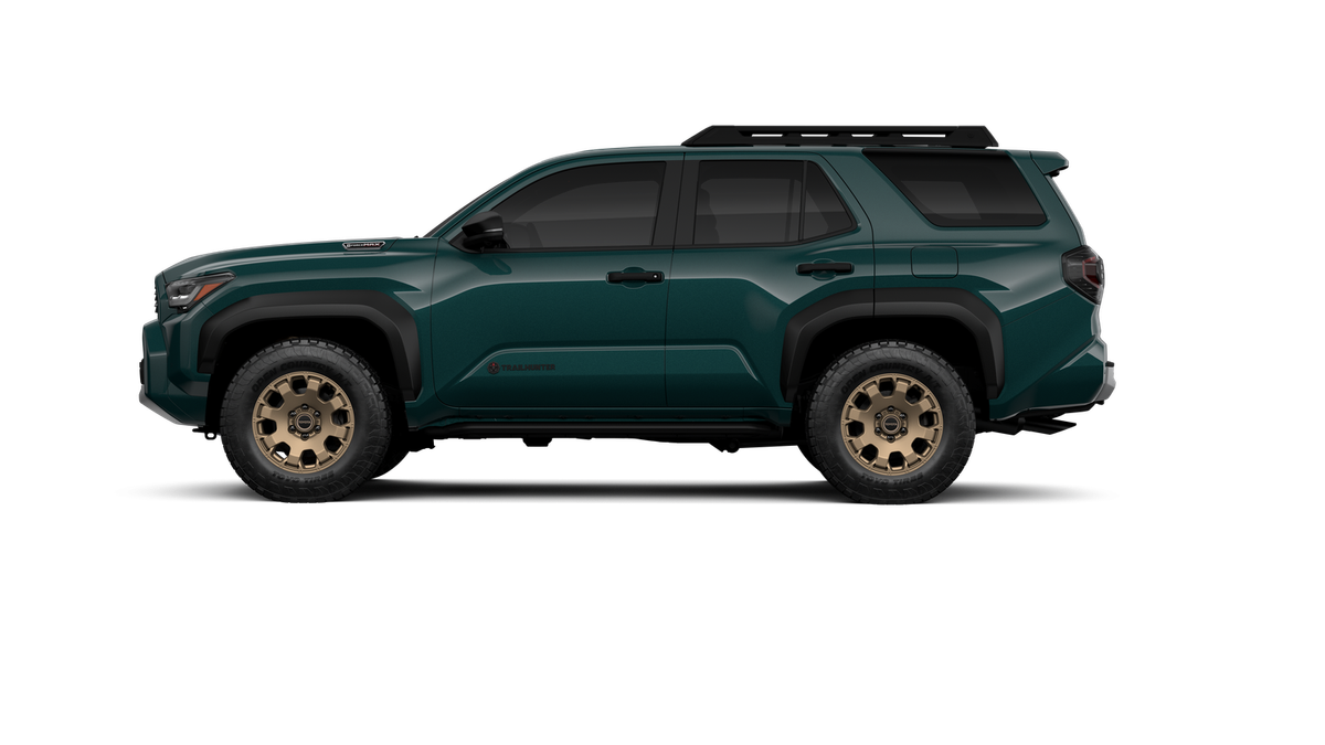 - Black "TOYOTA" heritage grille, door handles, and overfenders; color-keyed mirror caps and rear spoiler; black "TRAILHUNTER" and "4RUNNER" badges