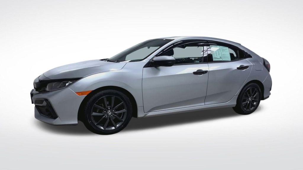 Certified. Silver 2021 Honda Civic EX 4D Hatchback FWD CVT 1.5L I4 DOHC 16V 31/40 City/Highway MPG