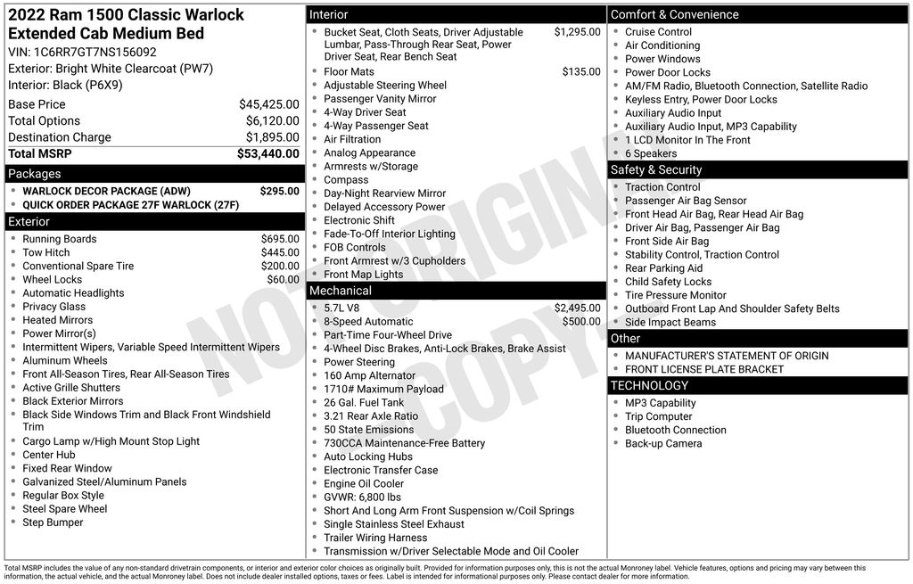 Certified. Clean CARFAX. 2022 Ram 1500 Classic Warlock 4WD 8-Speed Automatic HEMI 5.7L V8 Multi Displacement VVT