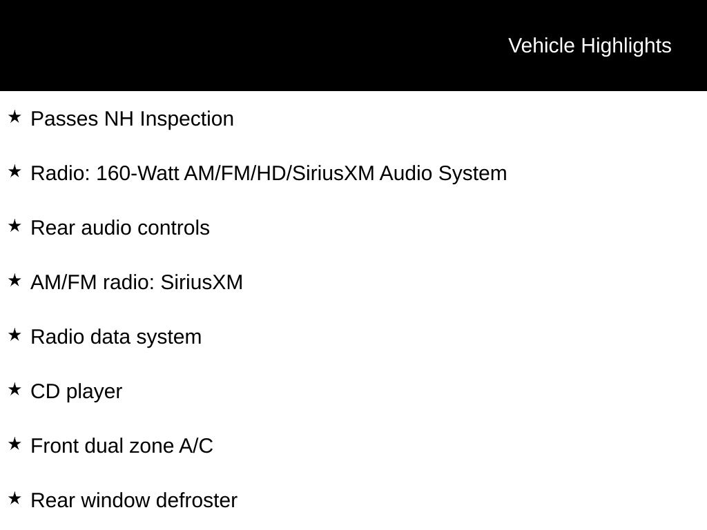 • Radio: 160-Watt AM/FM/HD/SiriusXM Audio System