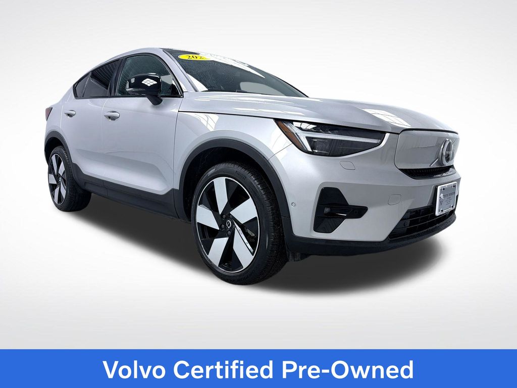 Certified. Silver 2023 Volvo C40 Recharge Pure Electric Ultimate 4D Sport Utility AWD 1-Speed Automatic Electric Motor 94/80 City/Highway MPG