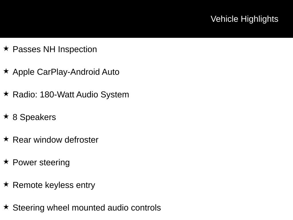 Used vehicle pricing includes all offers and incentives. OFFER EXCLUDES TAX, TAGS, TITLE AND $599 DEALER PROCESSING FEE. Some prices may include manufacturer-to-dealer offers that are not compatible with manufacturer special finance programs and/or lease offers. While great effort is made to ensure the accuracy of the information on this site, errors do occur so please verify information with a customer service rep. This is easily done by calling us at 603.354.6000 or by visiting us at the dealership.