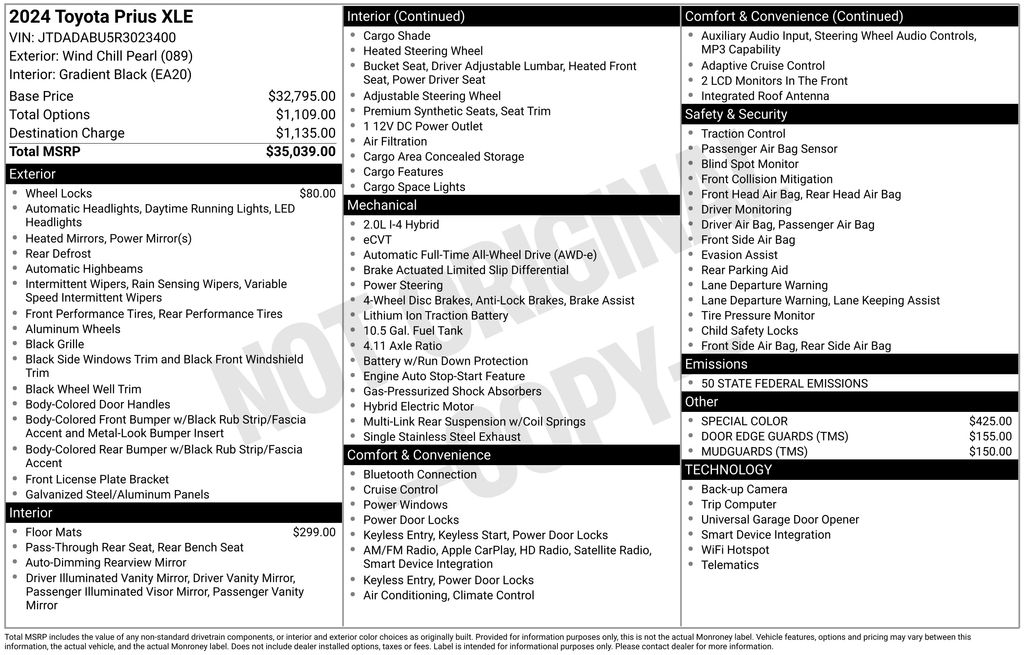 2024 Toyota Prius Limited AWD Continuously Variable (ECVT) 2.0L 4-Cylinder DOHC 16V VVT